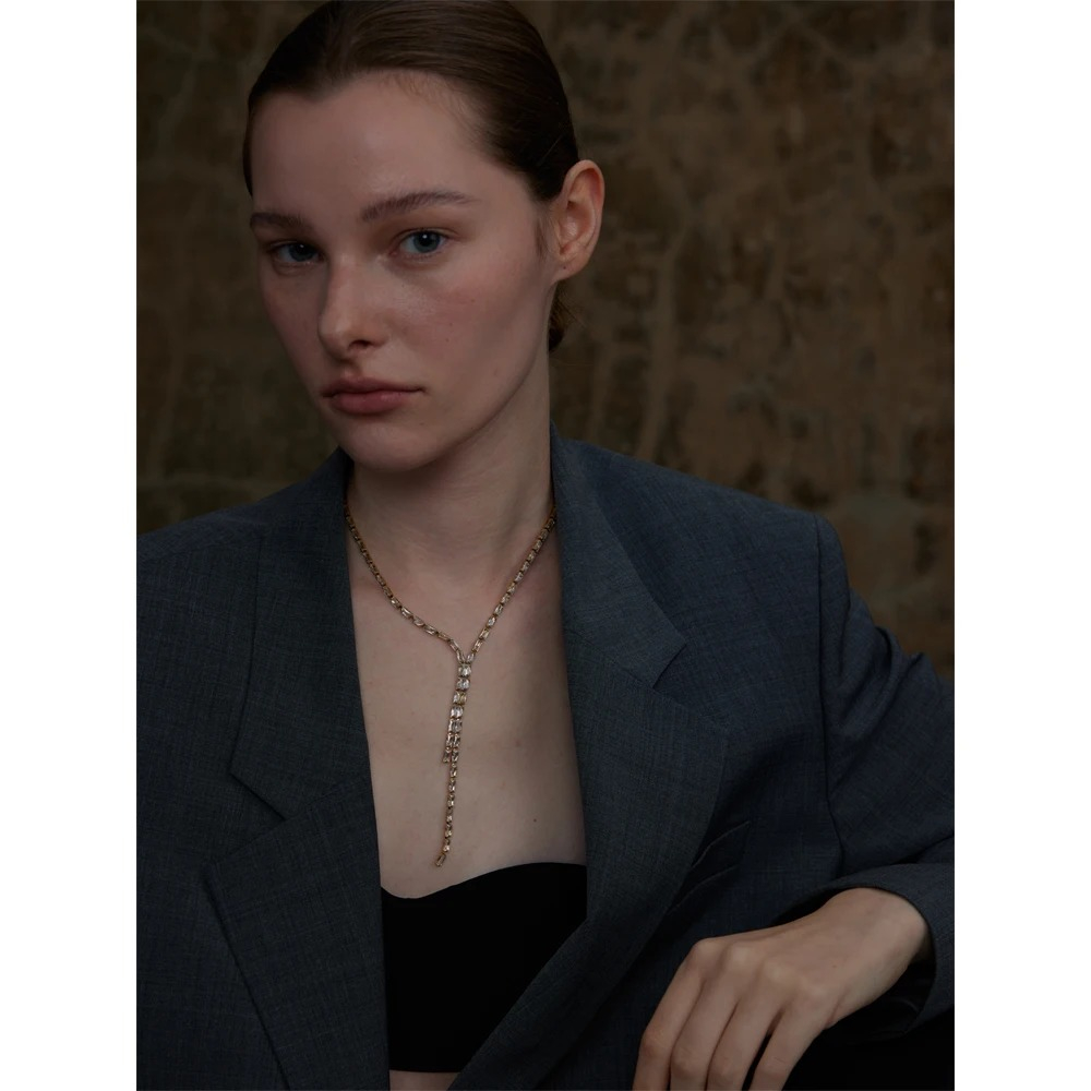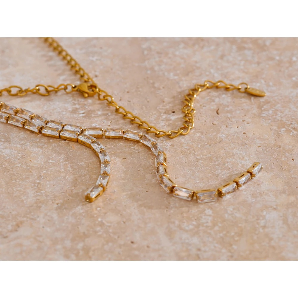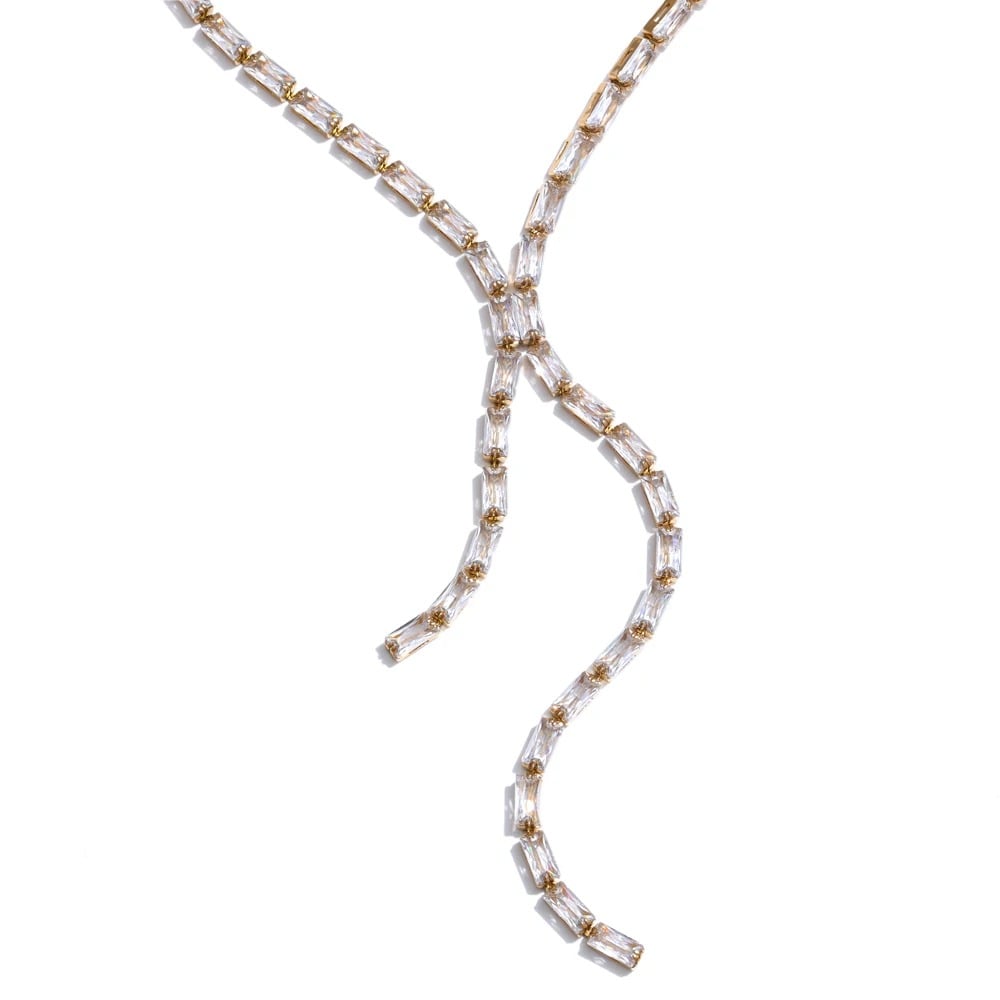Colier tennis Elma, auriu, cu pandantiv lung, din oțel inoxidabil placat cu aur 18K