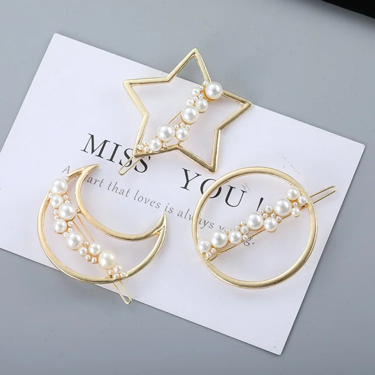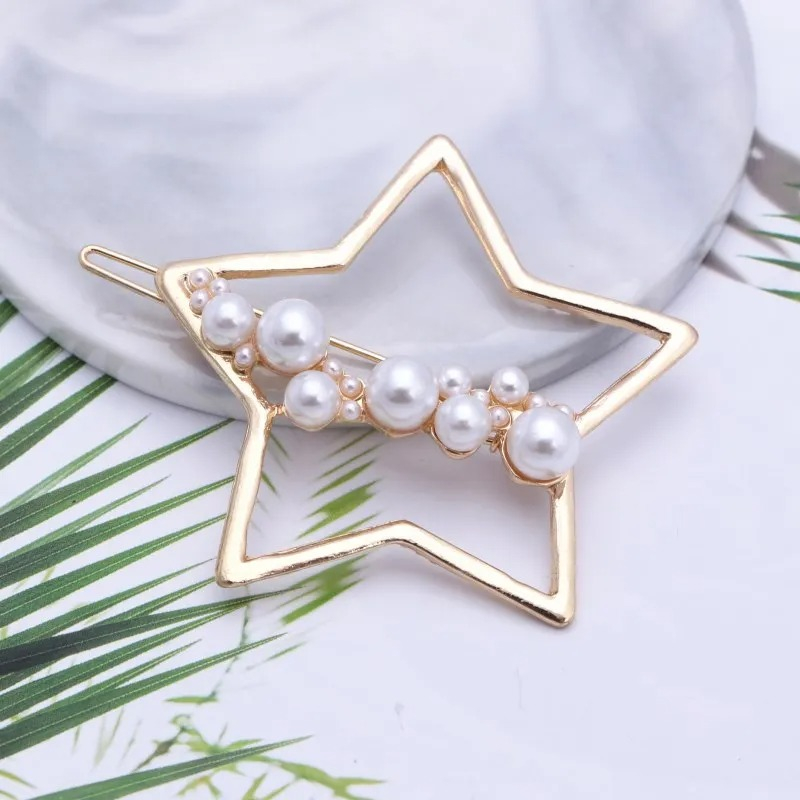 Agrafă de păr aurie, realizată din aliaj metalic și decorată cu perle.
