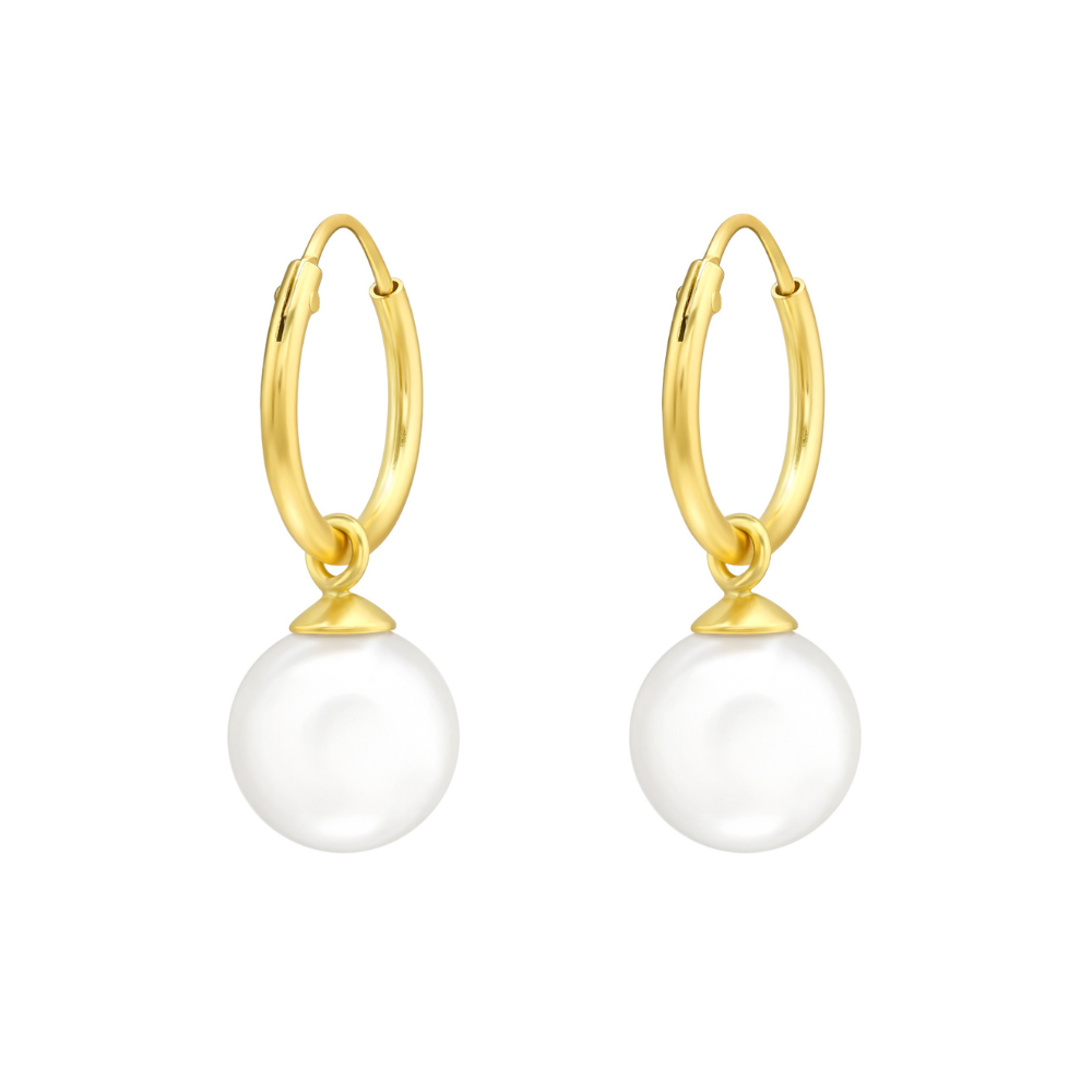 Cercei aurii rotunzi, realizați din Argint 925 placat cu Aur galben de 24K + Peliculă anticorozivă și decorați cu perle.