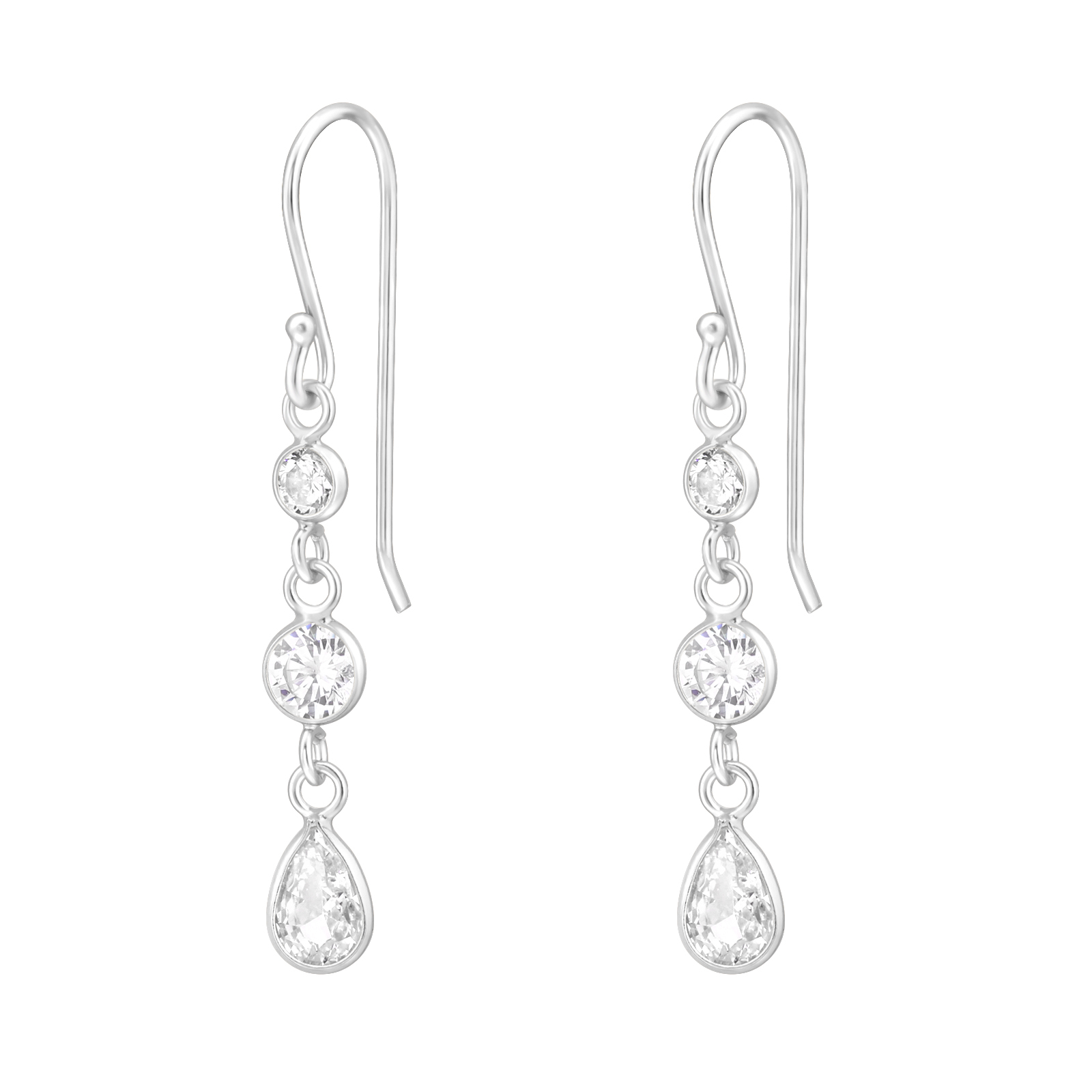 Cercei argintii lungi, realizați din Argint 925 placat cu Argint 999 + Peliculă anticorozivă și decorați cu zirconiu.