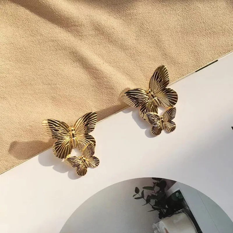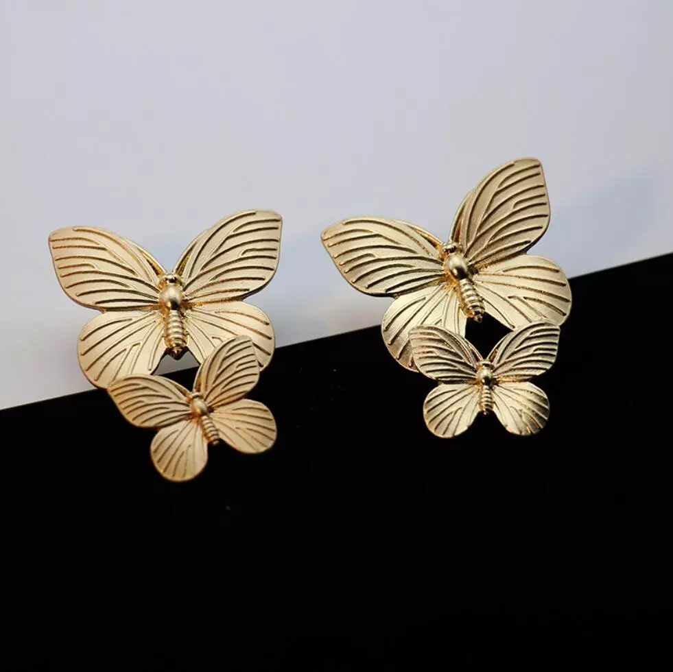 Cercei Carla, aurii, realizați din aliaj de zinc, în formă de fluturi.