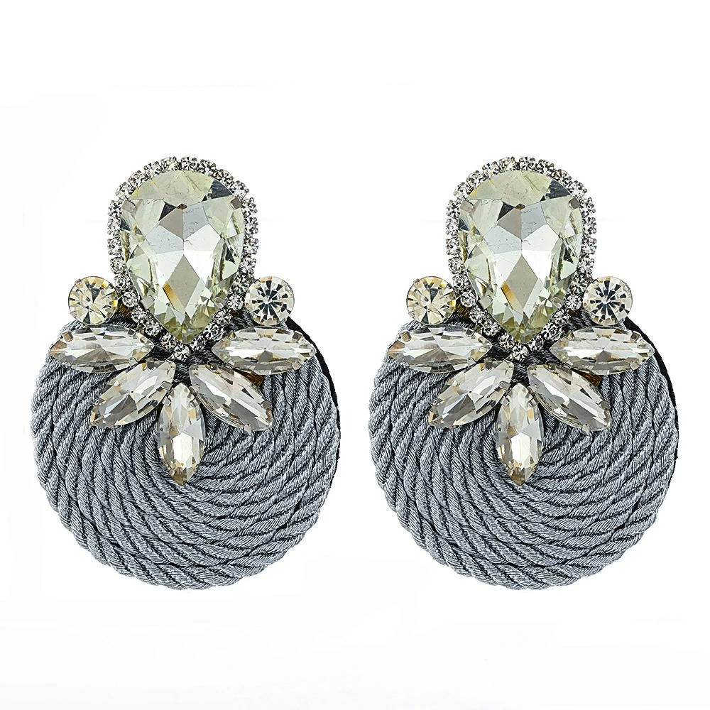Cercei Mays, rotunzi, argintii, realizați din aliaj de zinc și material textil și decorați cu pietre.