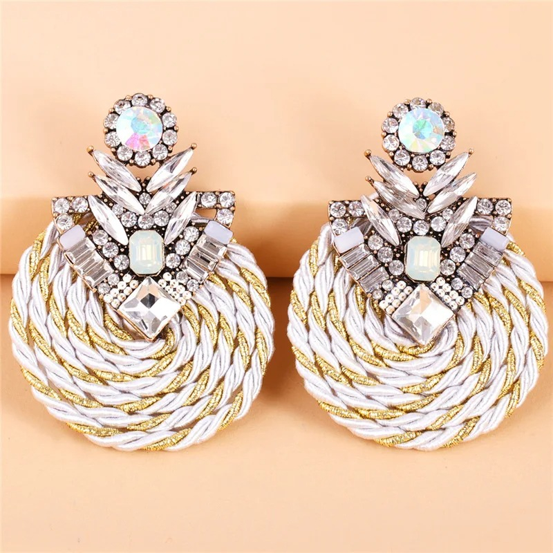 Cercei Orla, rotunzi, alb cu auriu, decorați cu pietre, cu model împletit
