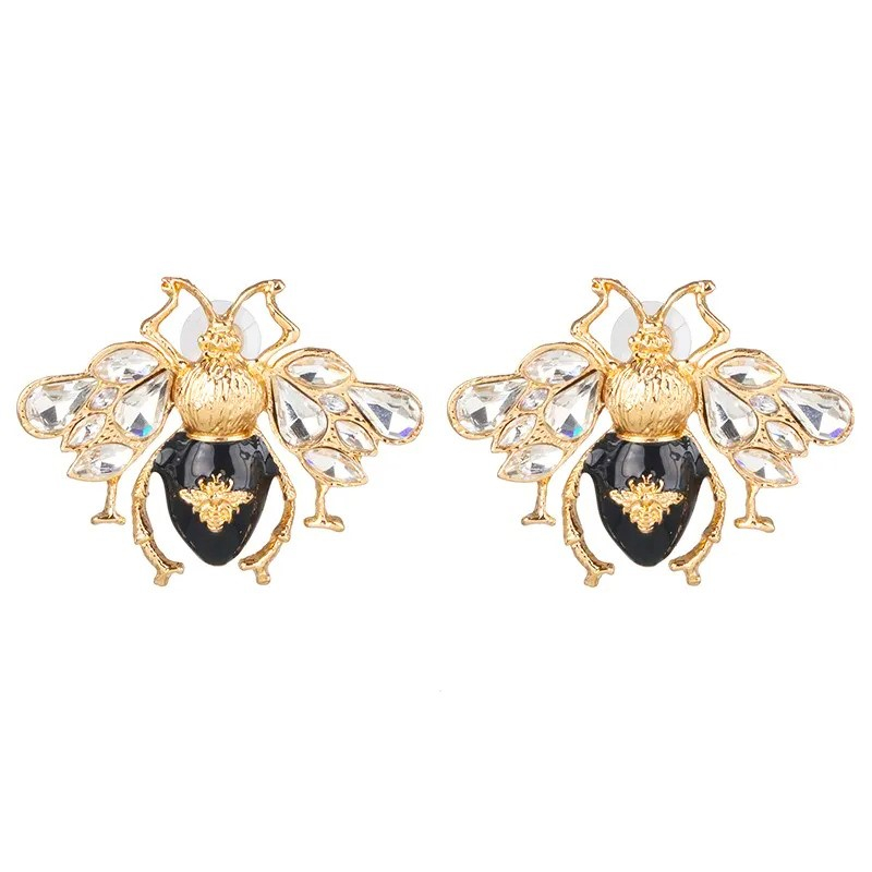 Cercei Bee, aurii, în formă de albină, realizați din aliaj de zinc și decorați cu zirconiu.