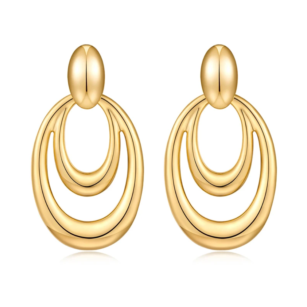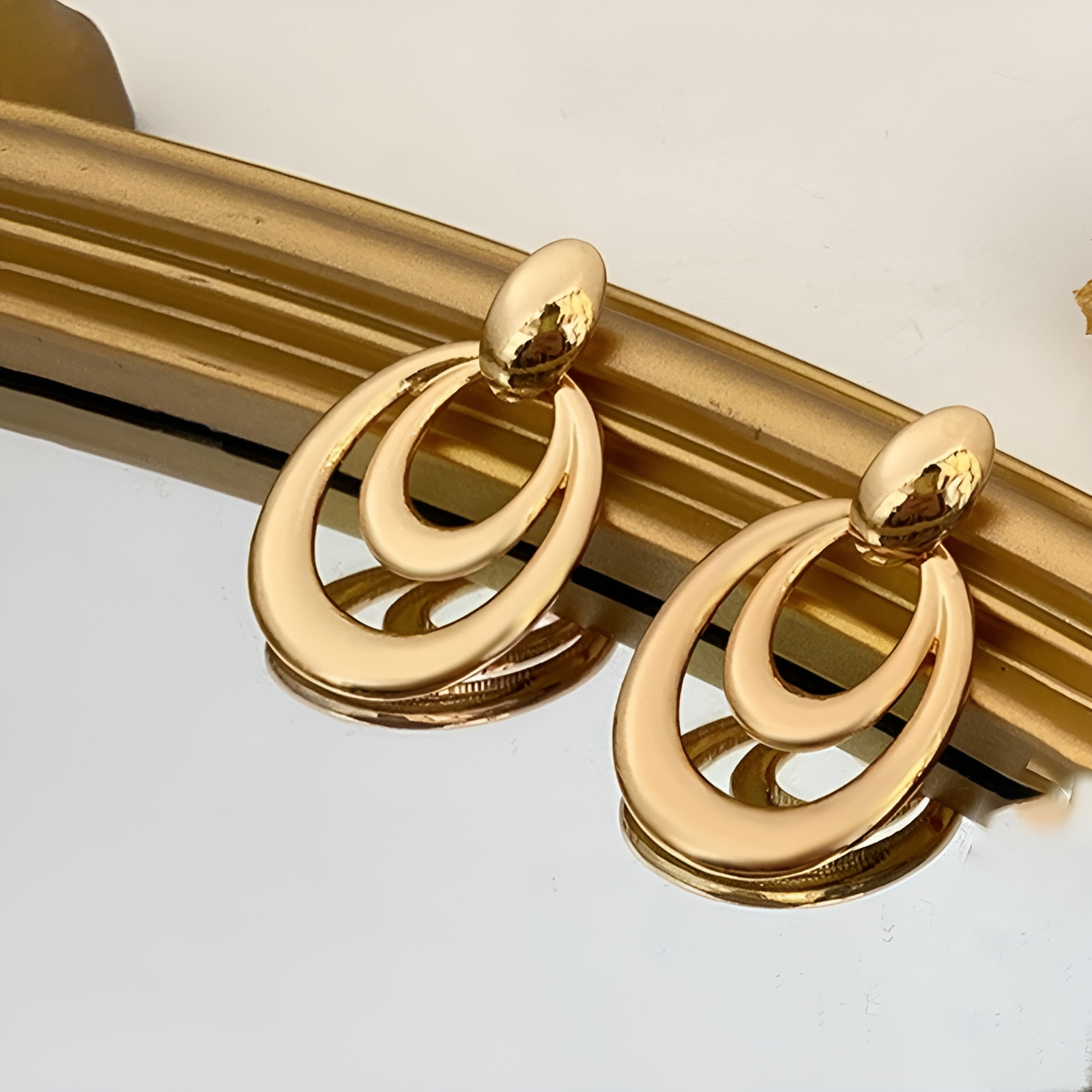 Cercei cu clips Fleur, aurii, rotunzi, cu cercuri duble
