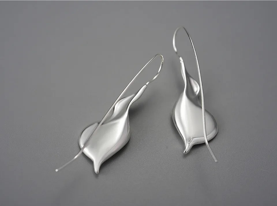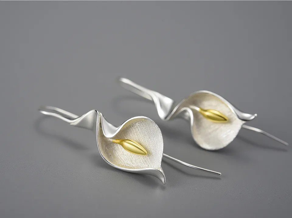 Cercei realizați manual din argint 925, placați cu aur 18K, în formă de crin.