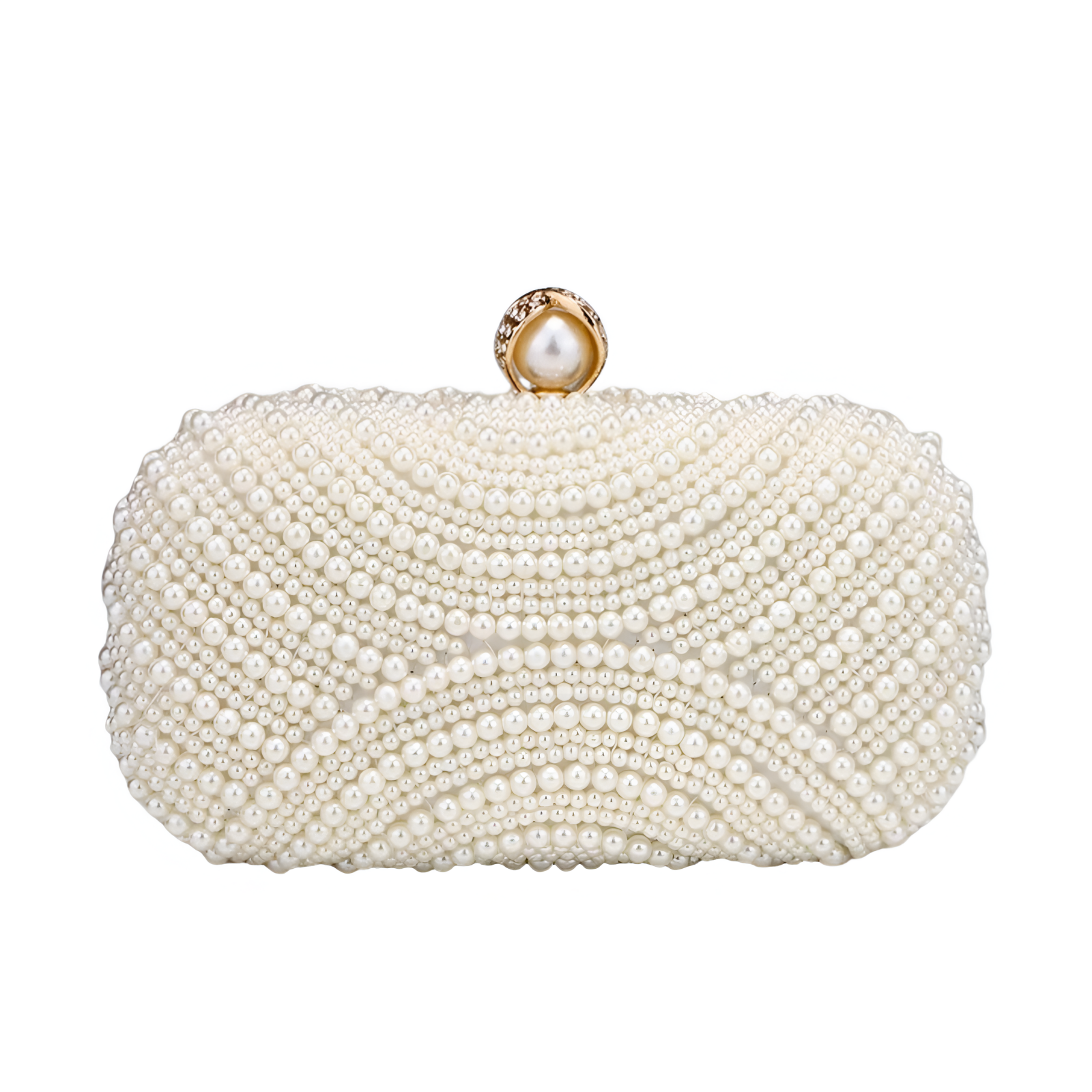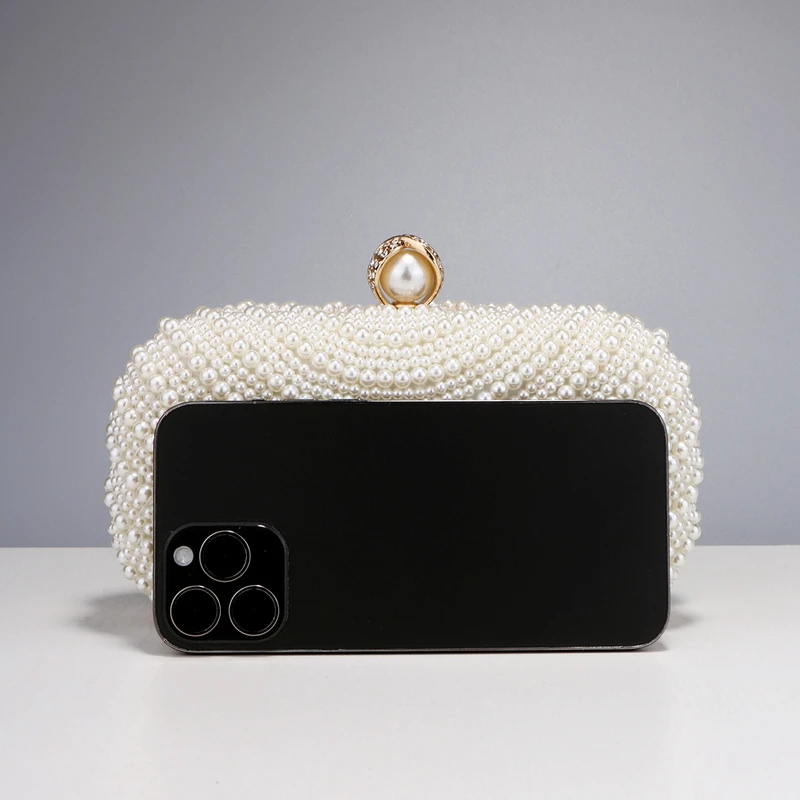 Geantă de seară elegantă, de ocazie, tip clutch, realizată din material textil și aliaj metalic, decorată cu perle.