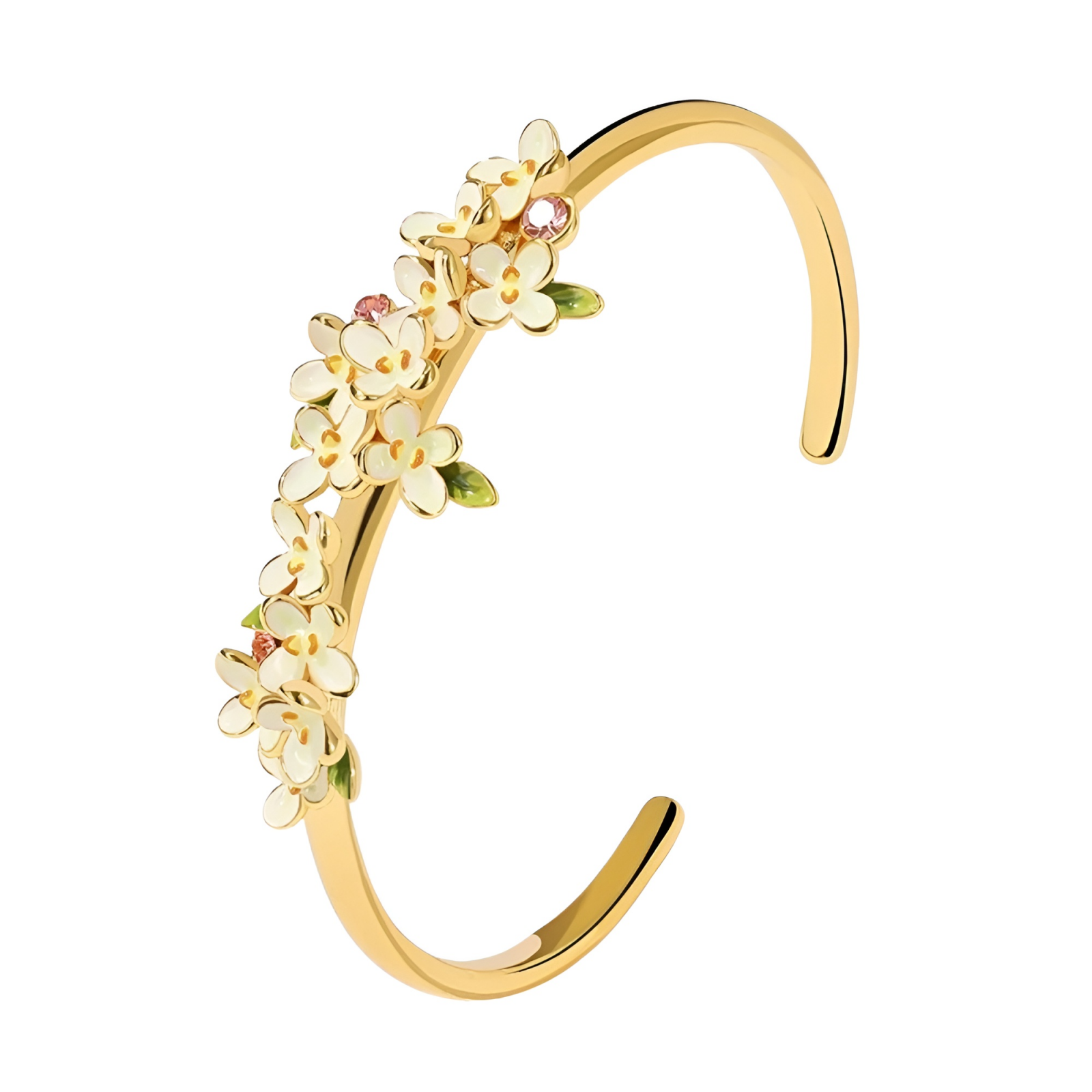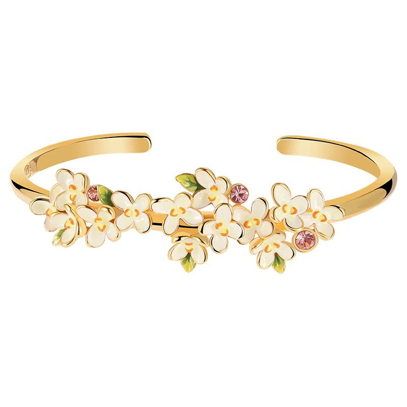 Brățară aurie, realizată din cupru placat cu aur 18K și email pictat manual, reglabilă.