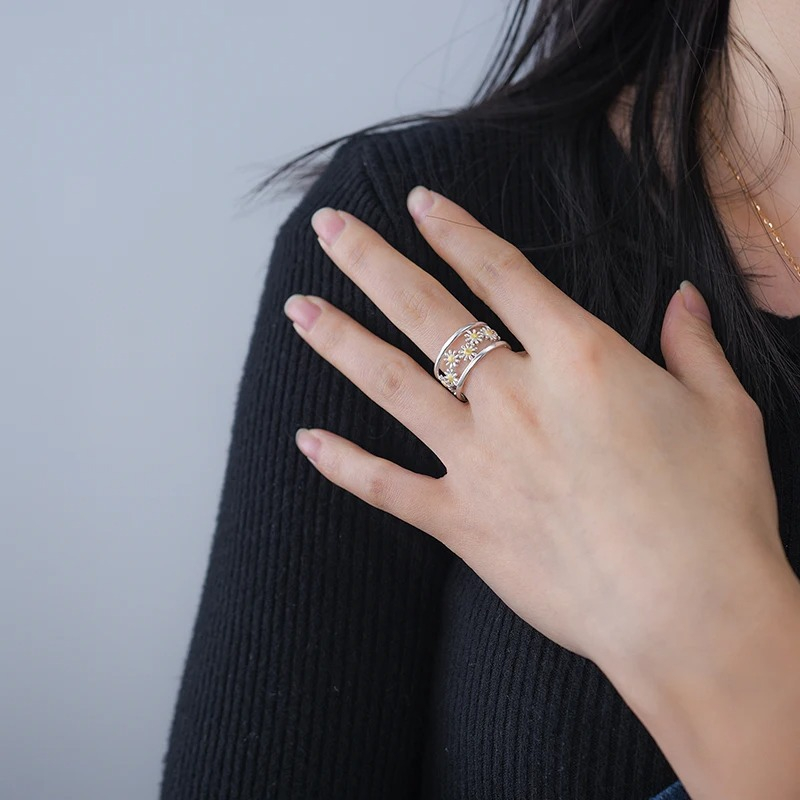 Inel auriu, cu model floral, realizat manual din argint 925 placat cu aur 18K.