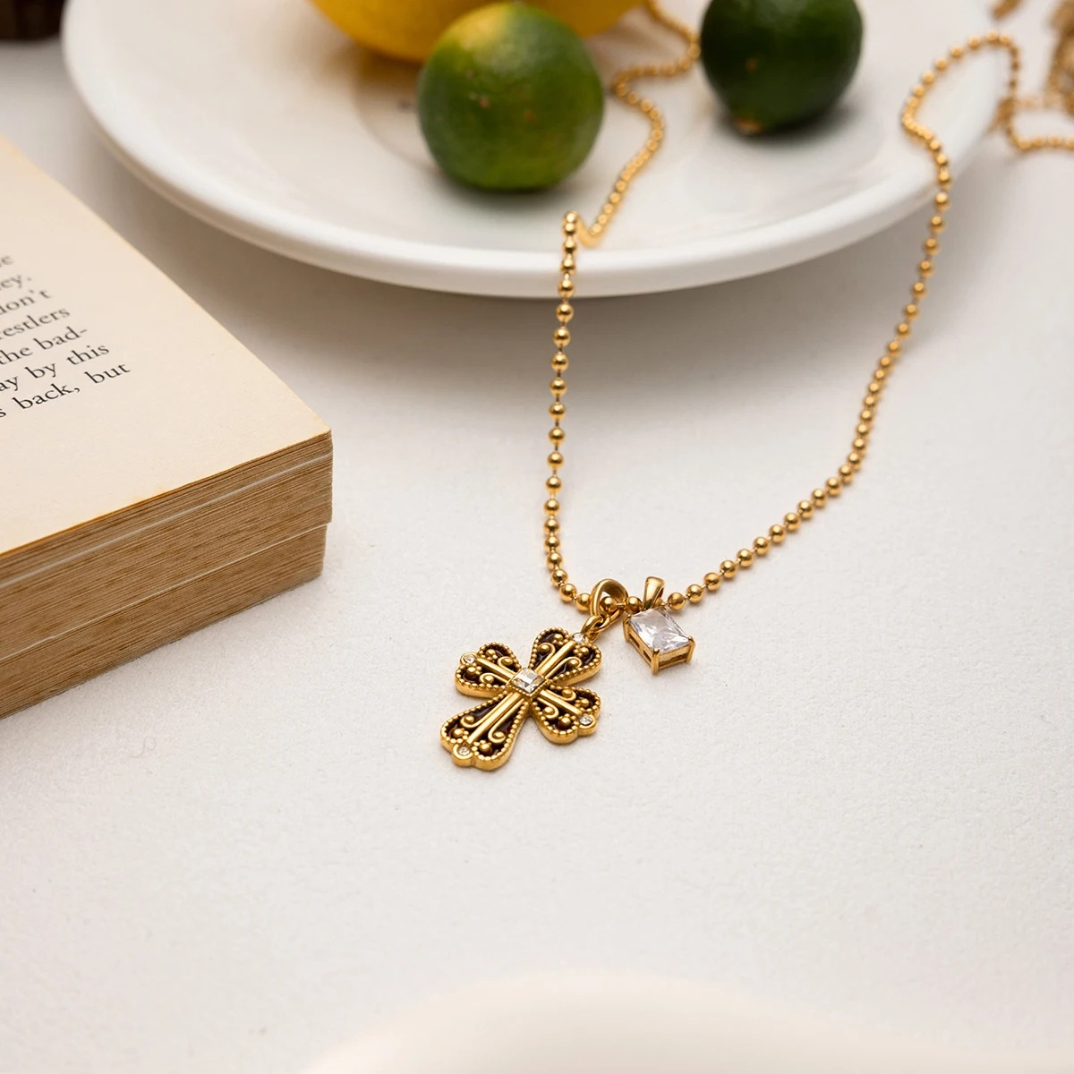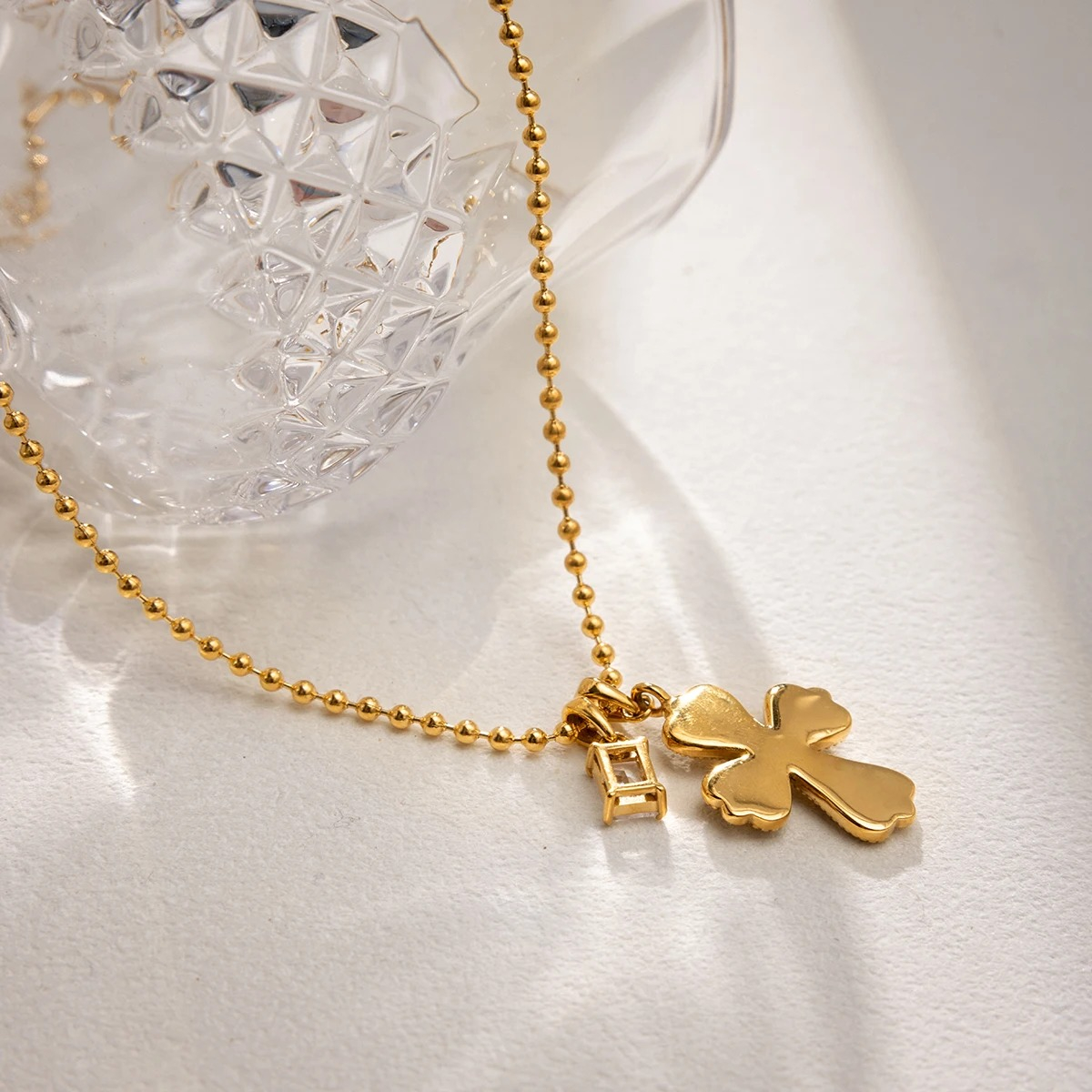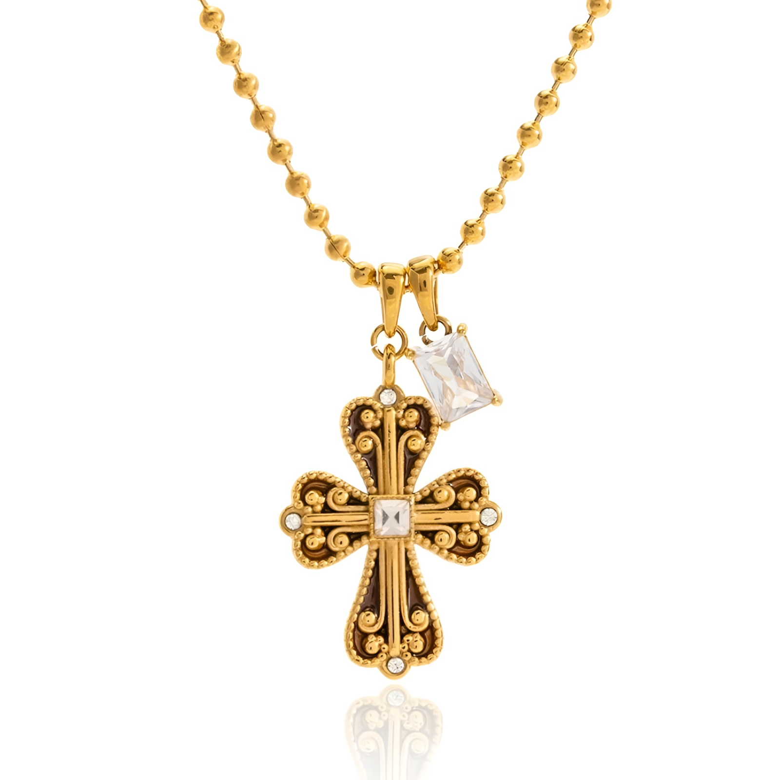 Colier auriu, realizat din oțel inoxidabil placat cu aur 18K, cu pandantiv în formă de cruce.