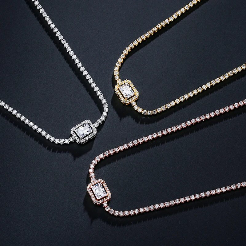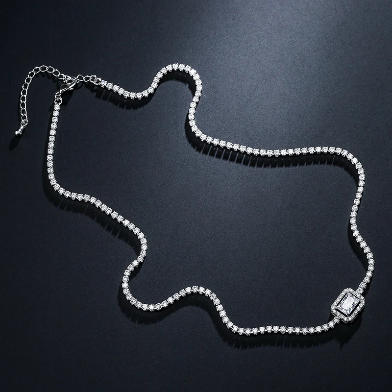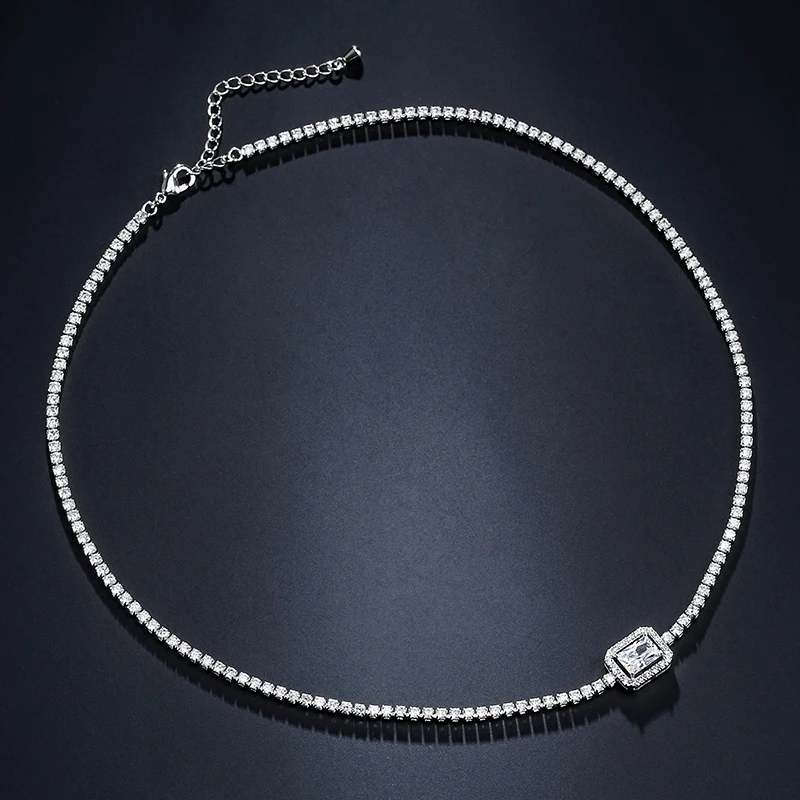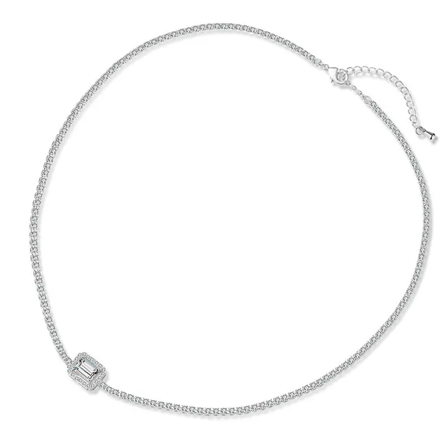 Colier tennis Maude, argintiu, confecționat din cupru și decorat cu zirconiu.