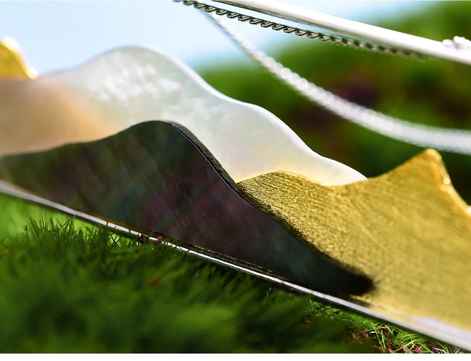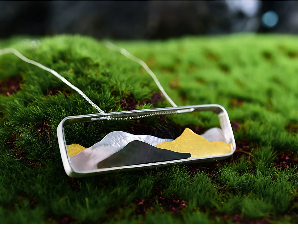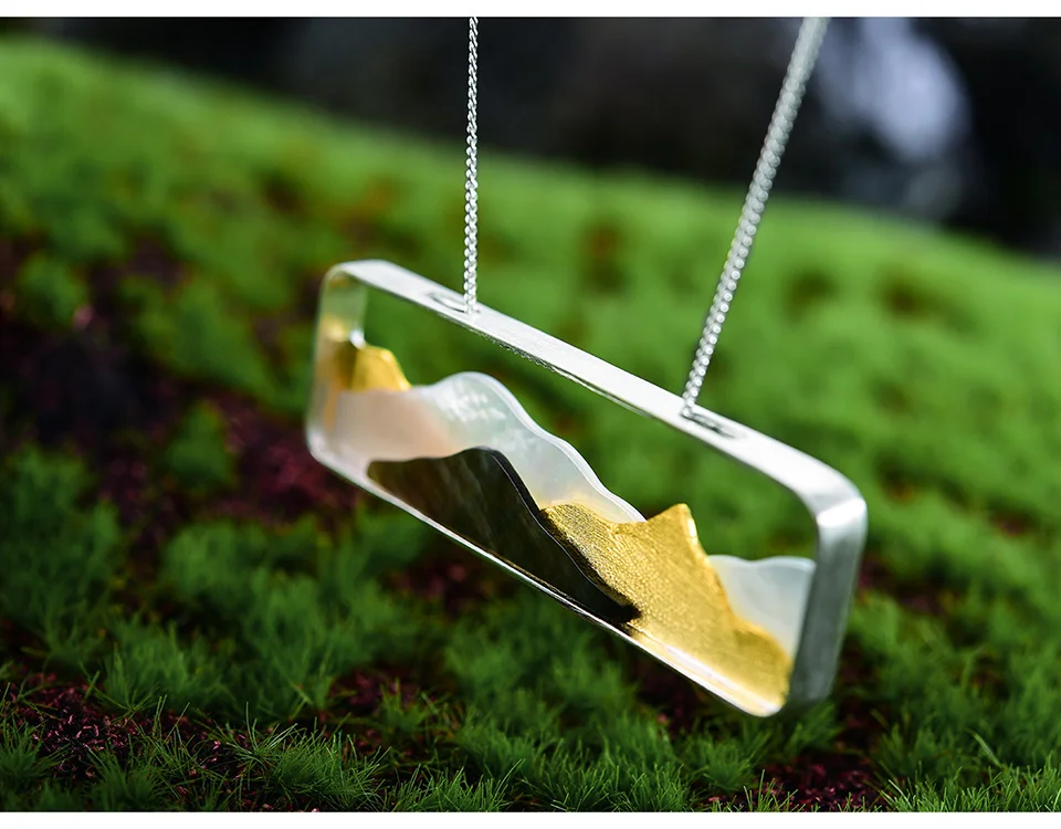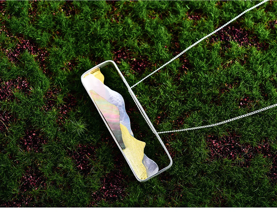 Colier cu pandantiv dreptunghiular, realizat manual din argint 925 placat cu aur 18K.