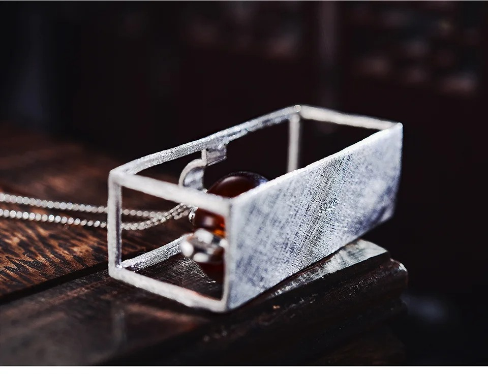 Colier cu pandantiv dreptunghiular, realizat manual din argint 925.