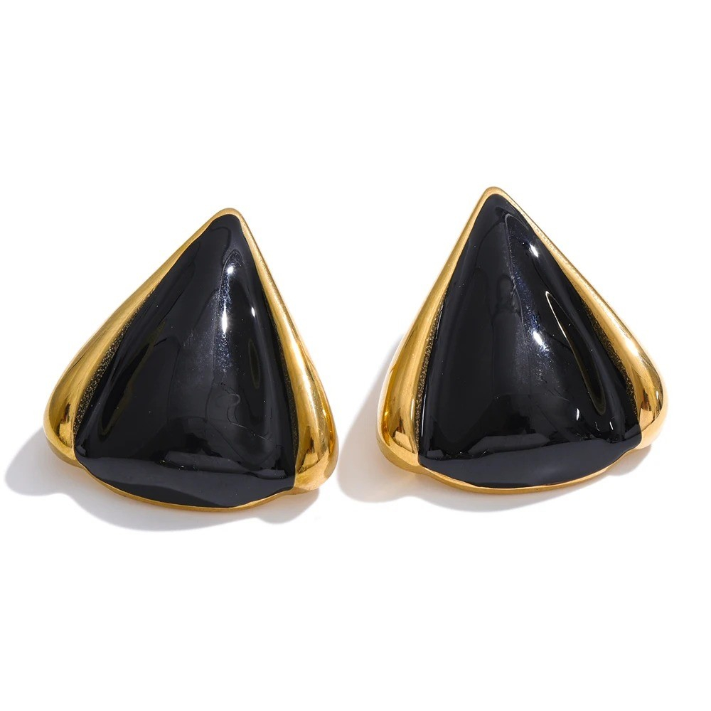 Geometric earrings, black and gold, made of 18K gold-plated stainless steel.
