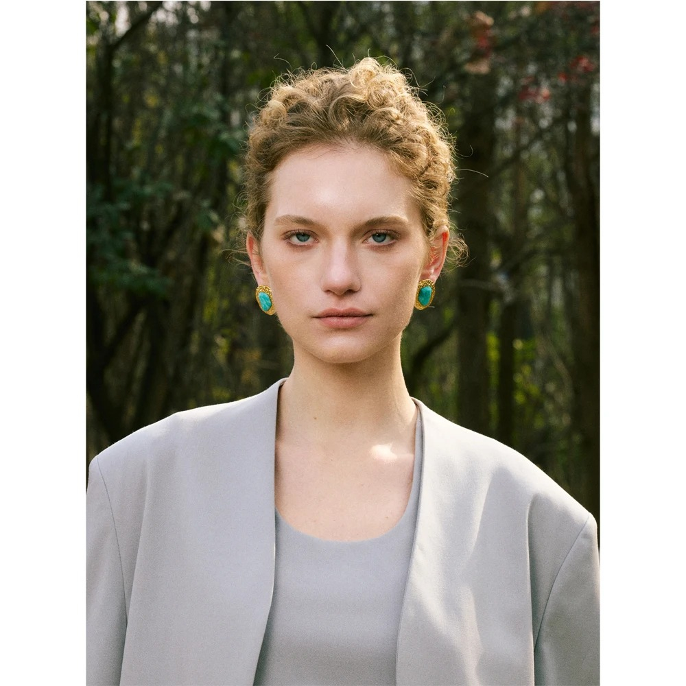 EVA GRACE Tamika gold stud earrings, made of 18K gold-plated stainless steel and natural Amazonite stones