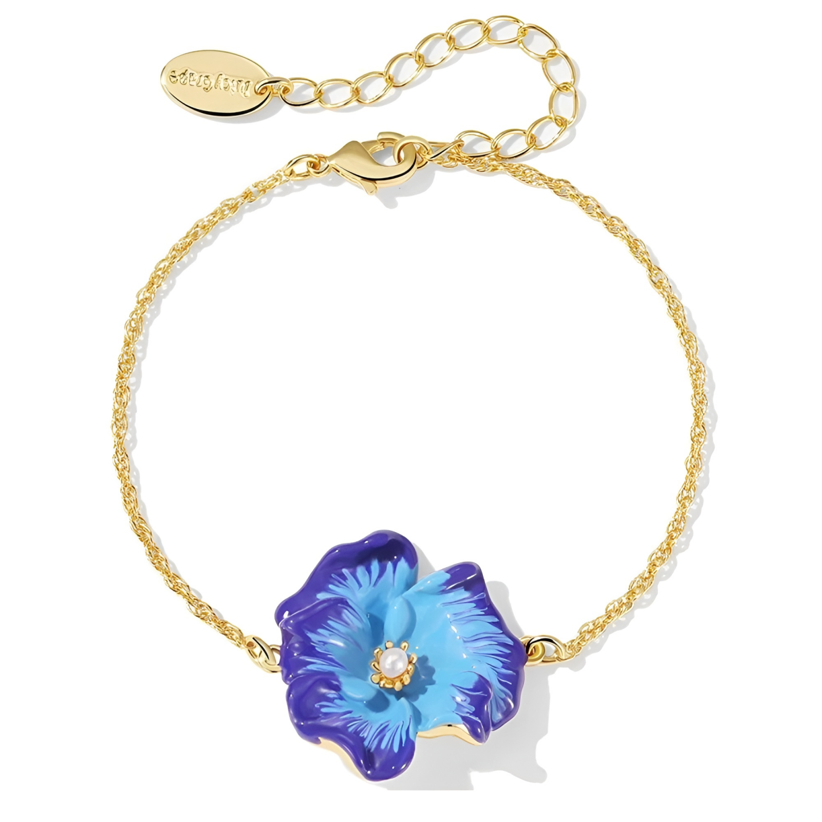 Brățară aurie, realizată din cupru placat cu aur de 18K și email pictat manual, cu model orhidee.