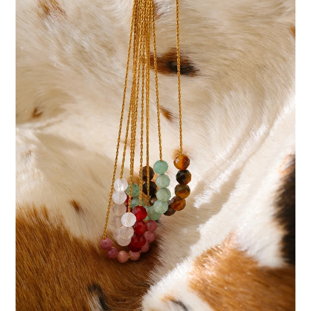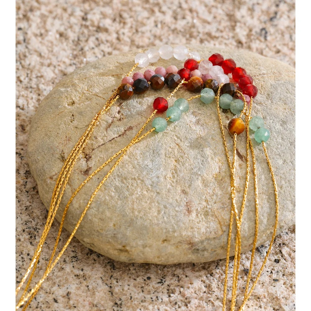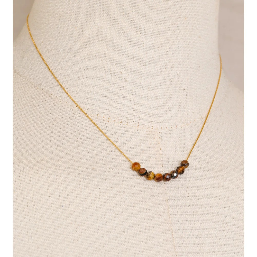 Colier realizat din oțel inoxidabil placat cu aur 18K, decorat cu pietre naturale.