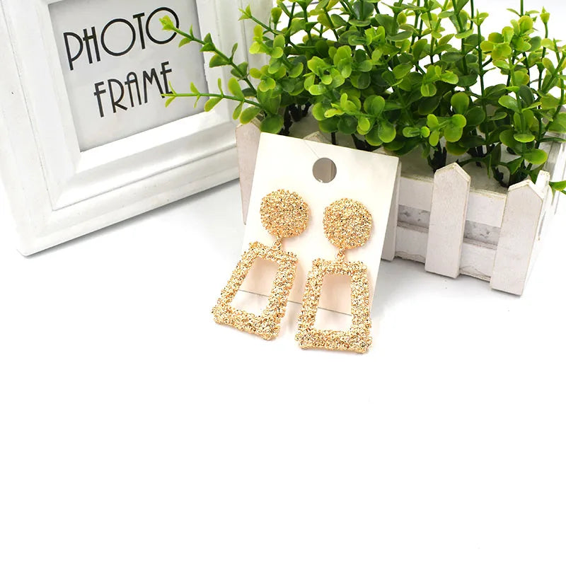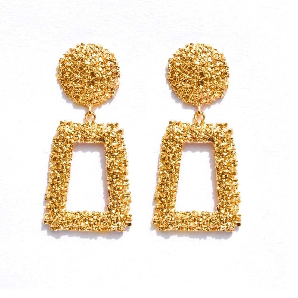 Cercei Raquel, aurii, realizați din aliaj de zinc, cu inchidere tip clips.