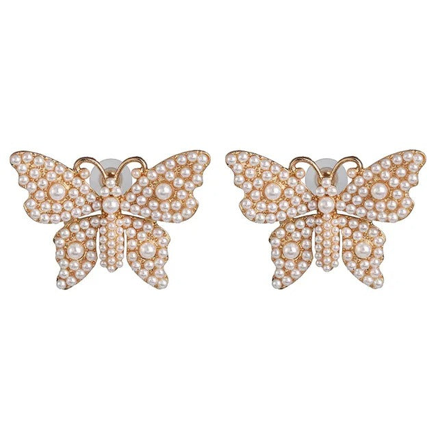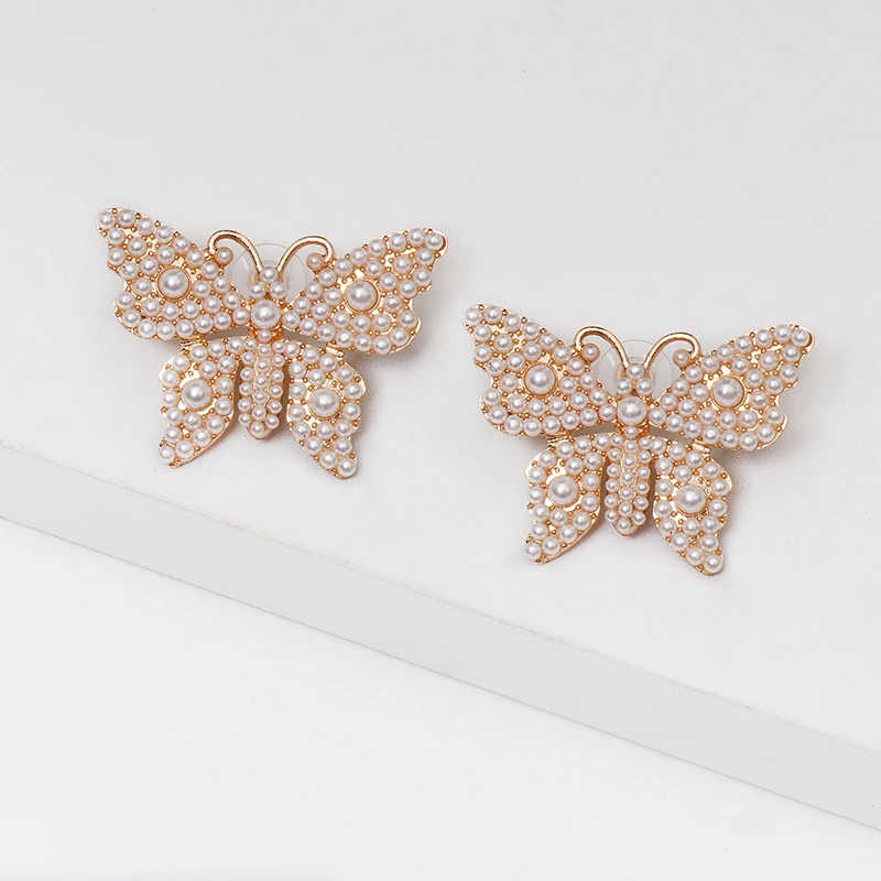 Cercei Finley, aurii, cu perle, in forma de fluture