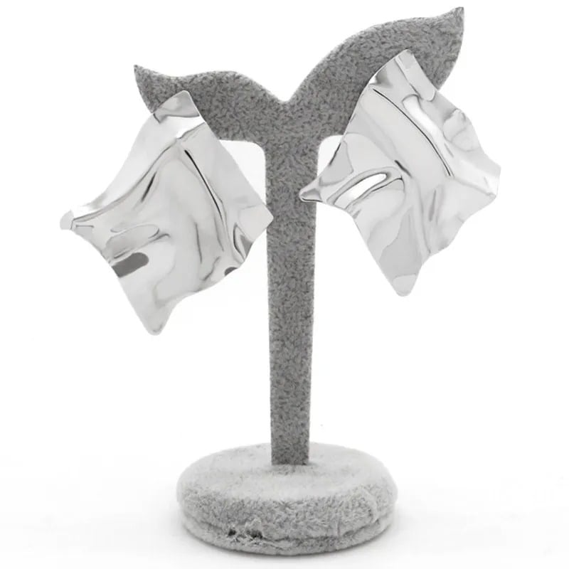 Cercei Laurie, argintii, realizați din aliaj de zinc, cu model texturat.