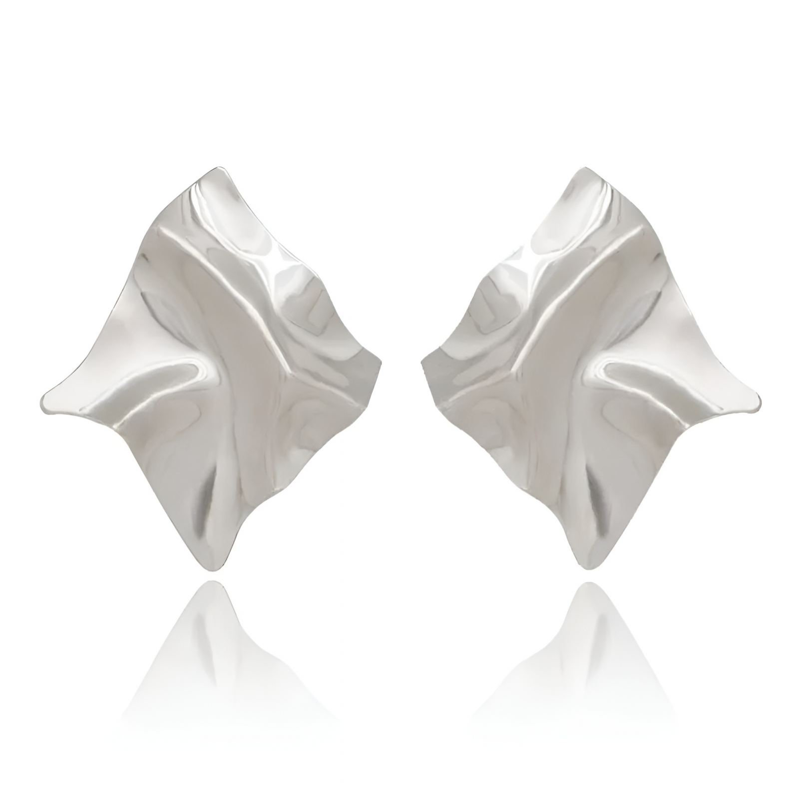 Cercei Laurie, argintii, in forma de romb, cu model texturat