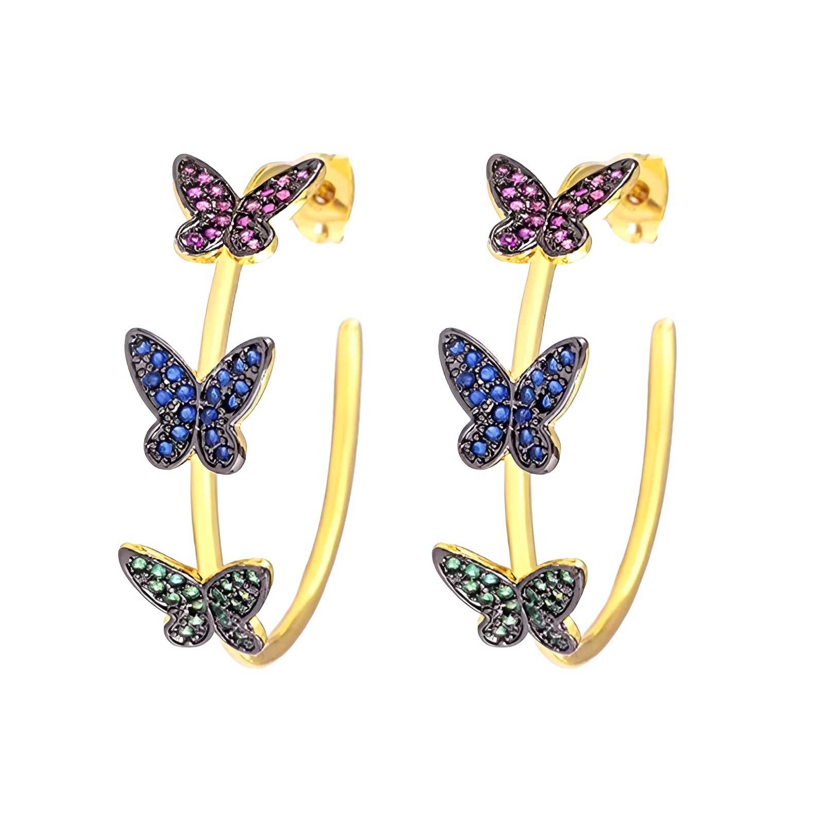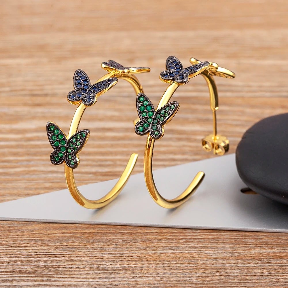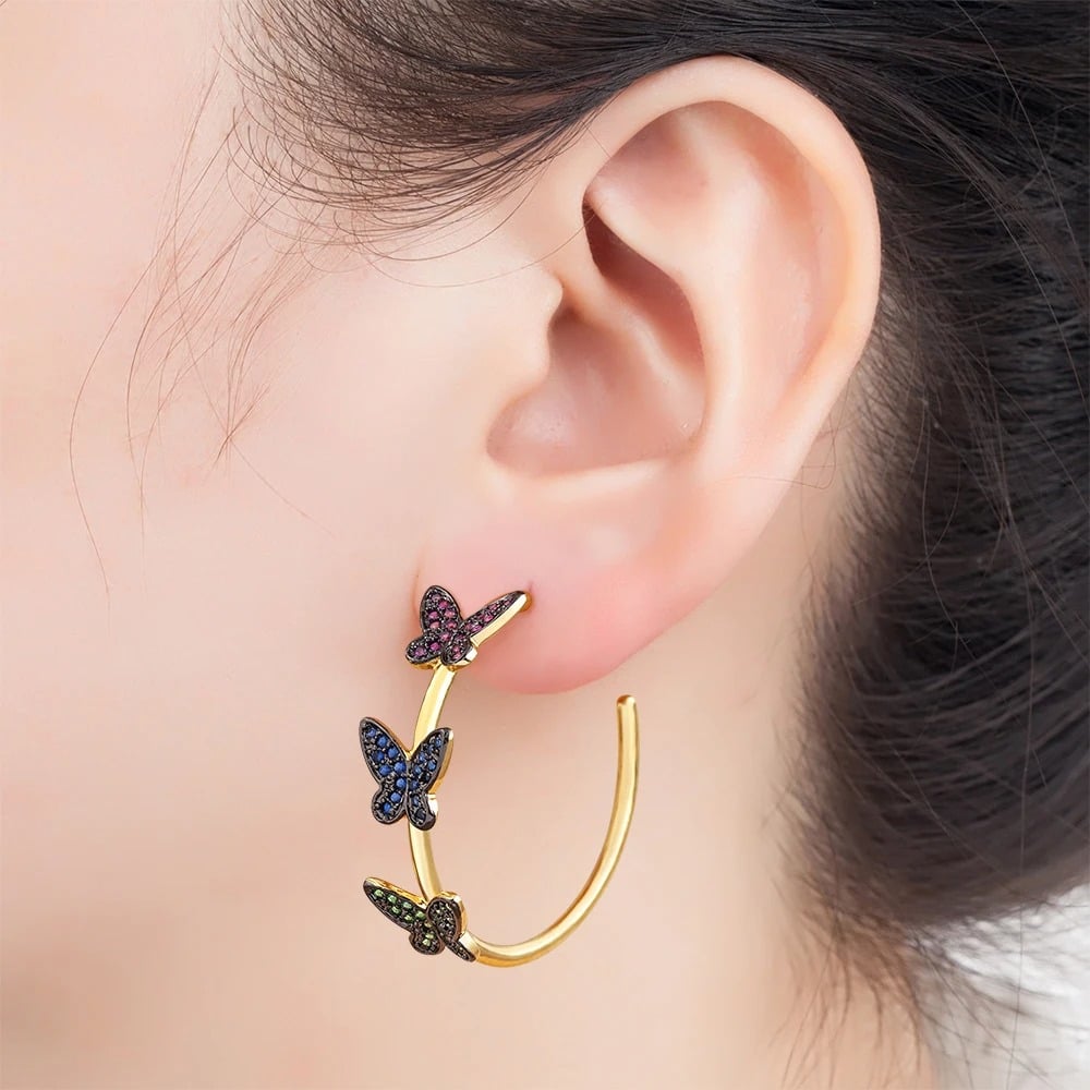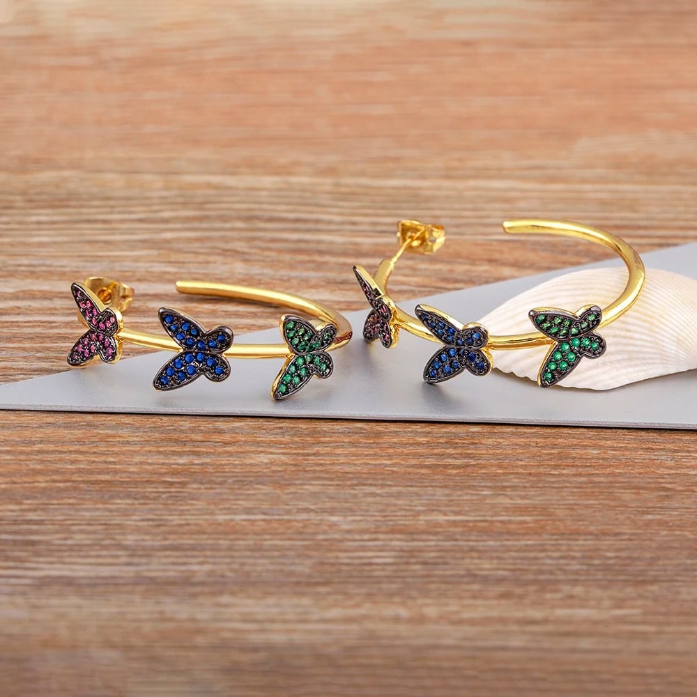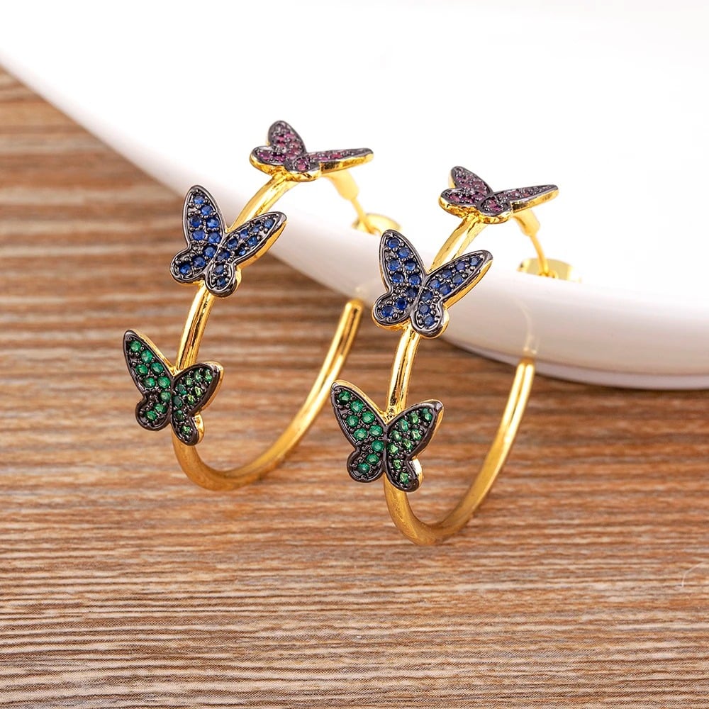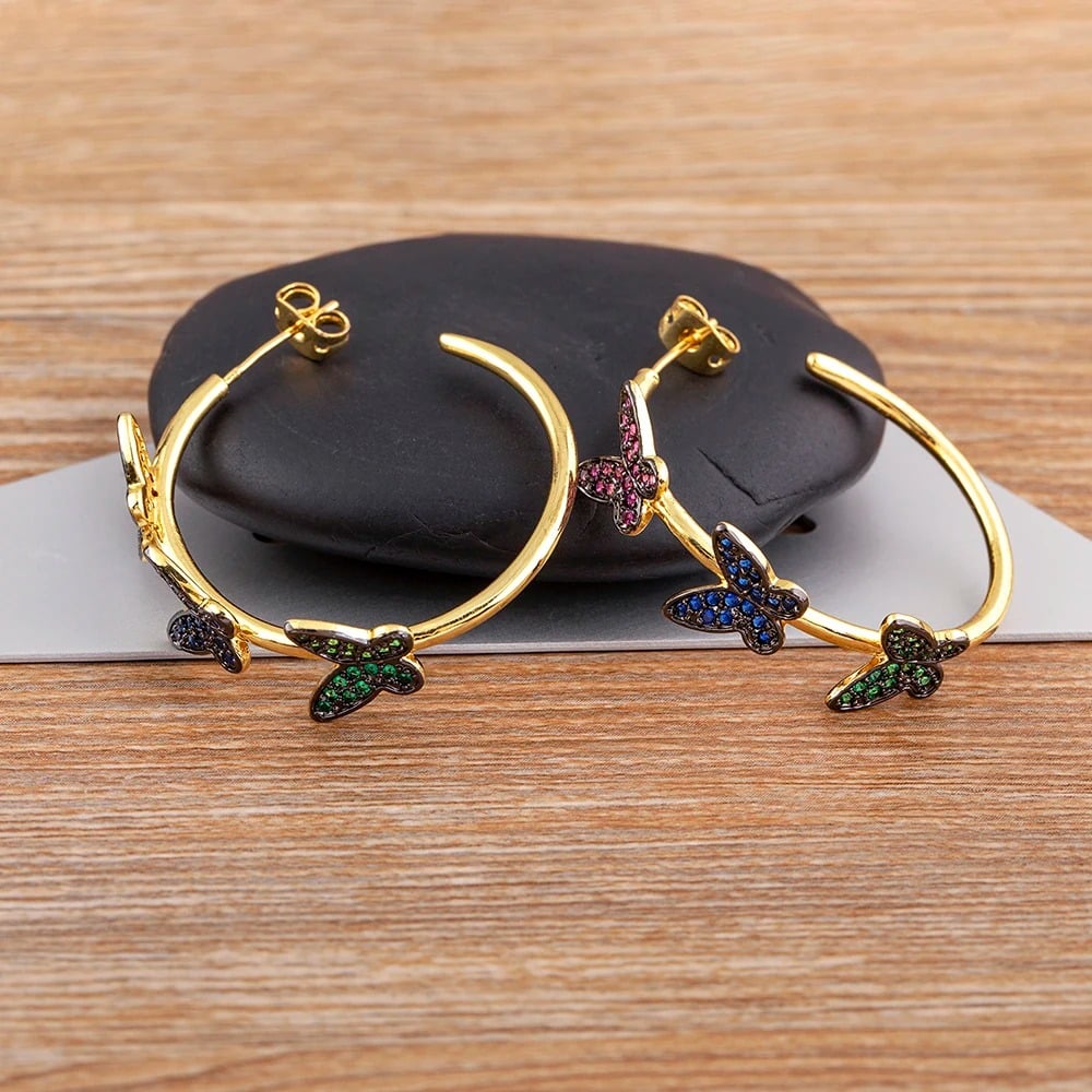 Cercei Marely, aurii, rotunzi, cu model fluturi multicolori - Colectia Boheme