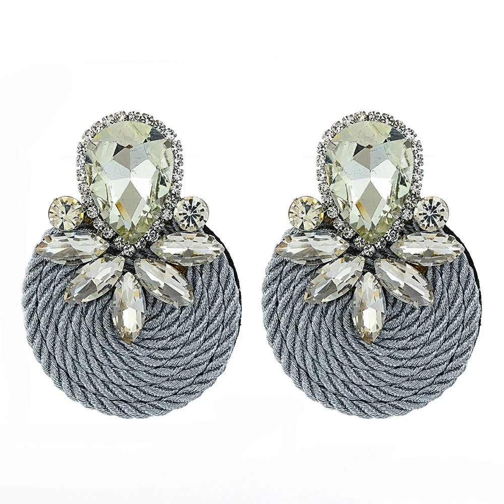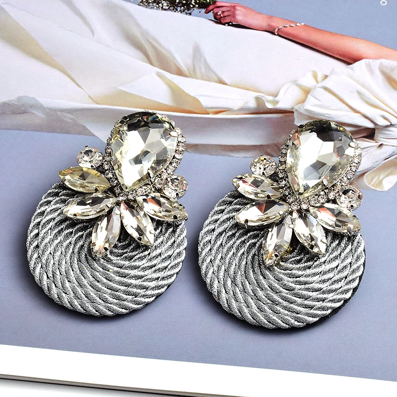 Cercei Mays, rotunzi, argintii, decorati cu pietre, cu model impletit