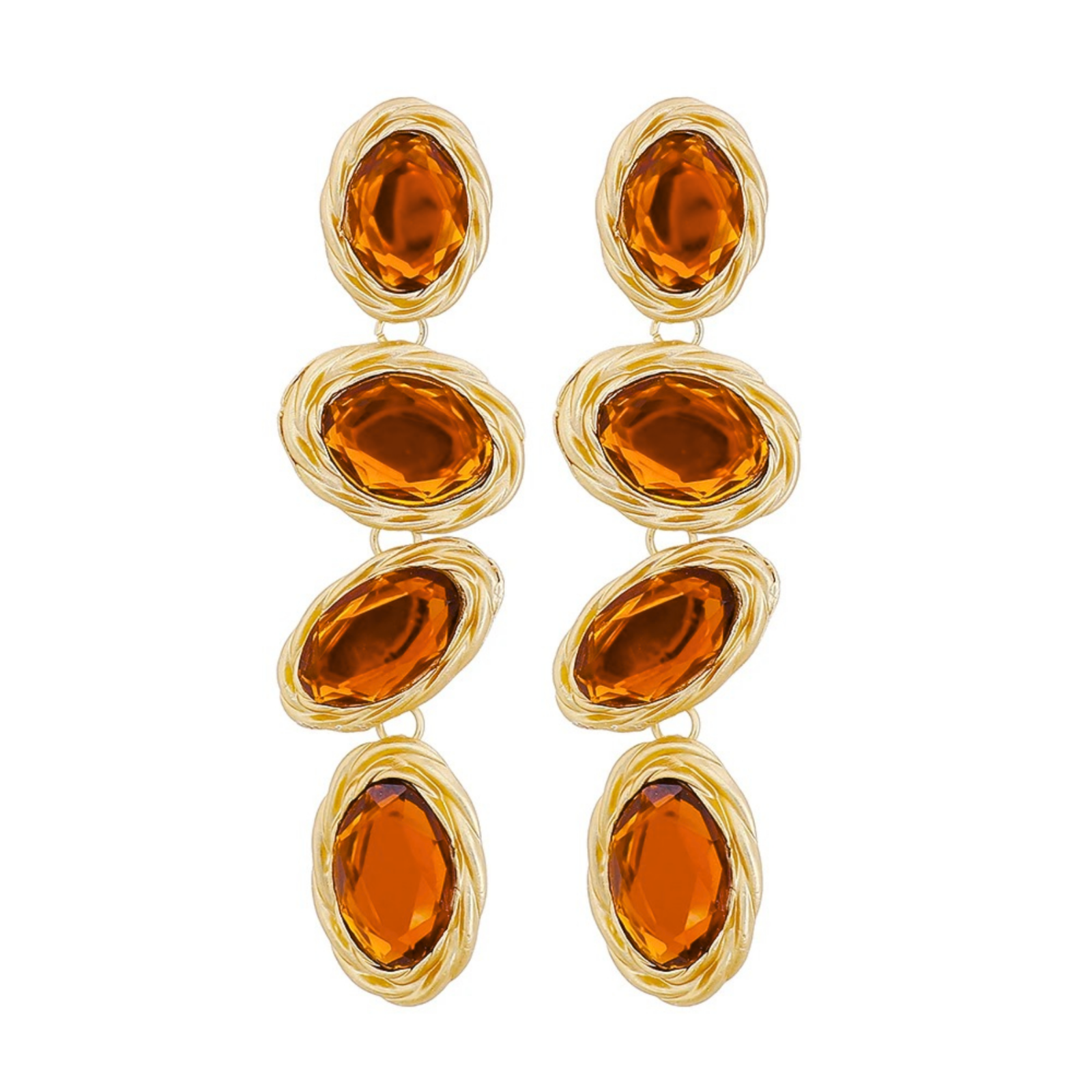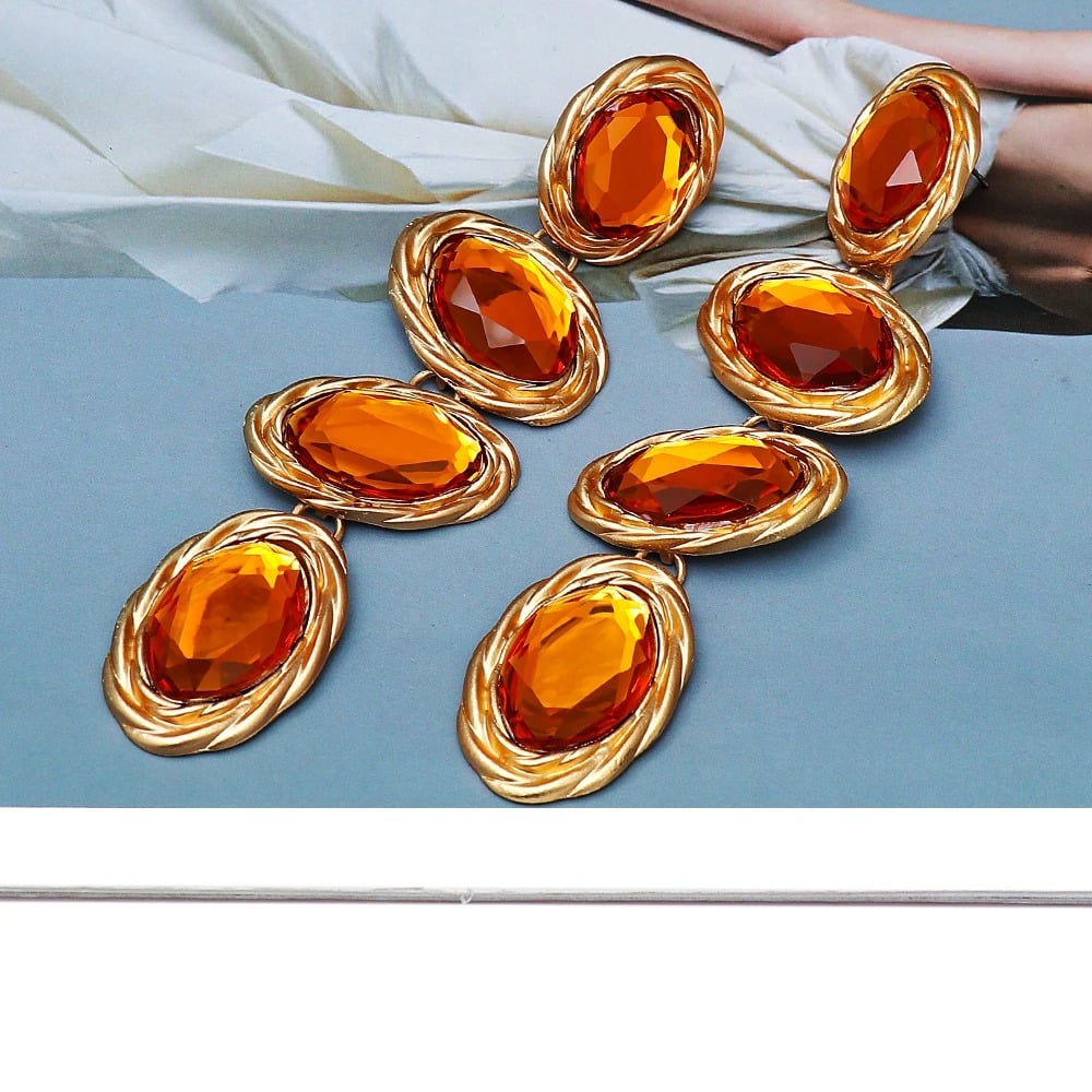 Cercei Milani, lungi, portocalii, cu pietre si montura aurie