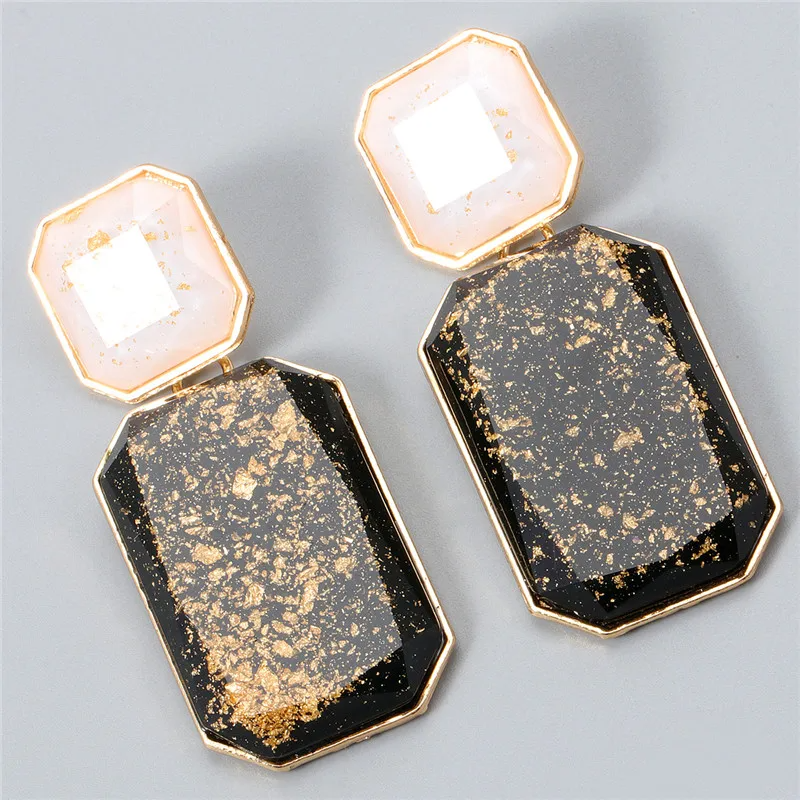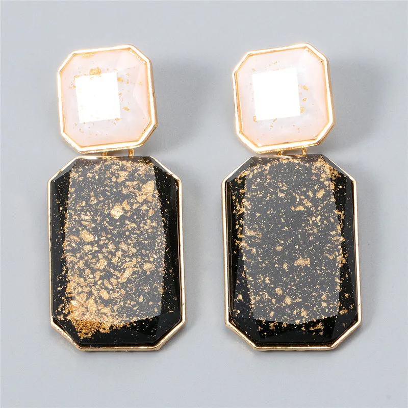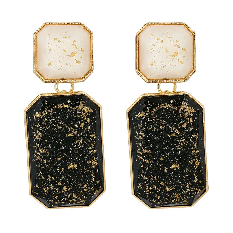 Cercei Riley, auriu cu negru, realizați din aliaj de zinc și polirășină.